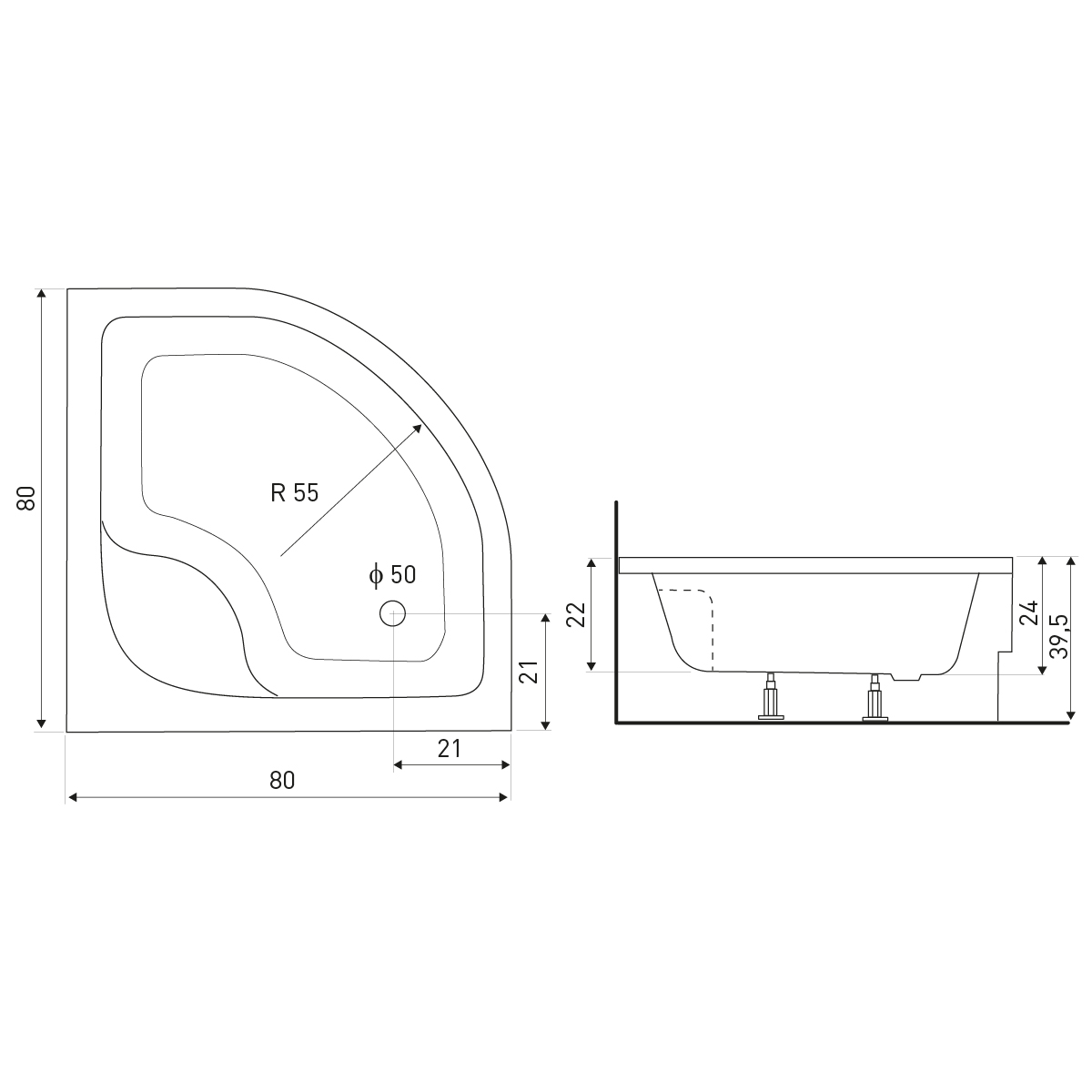 Brodzik półokrągły głęboki 80x80x39,5 Aston