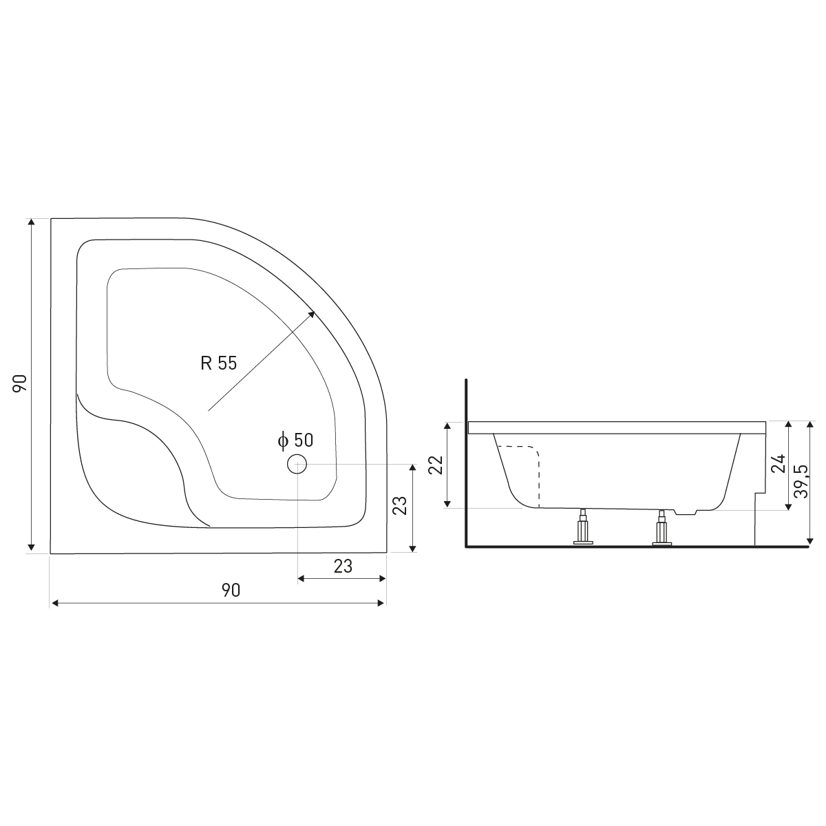 Brodzik półokrągły głęboki 90x90x39,5 Aston