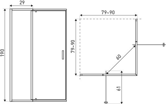 Shower enclosure Dunaj 2-D 80-90×80-90 w/o tray
