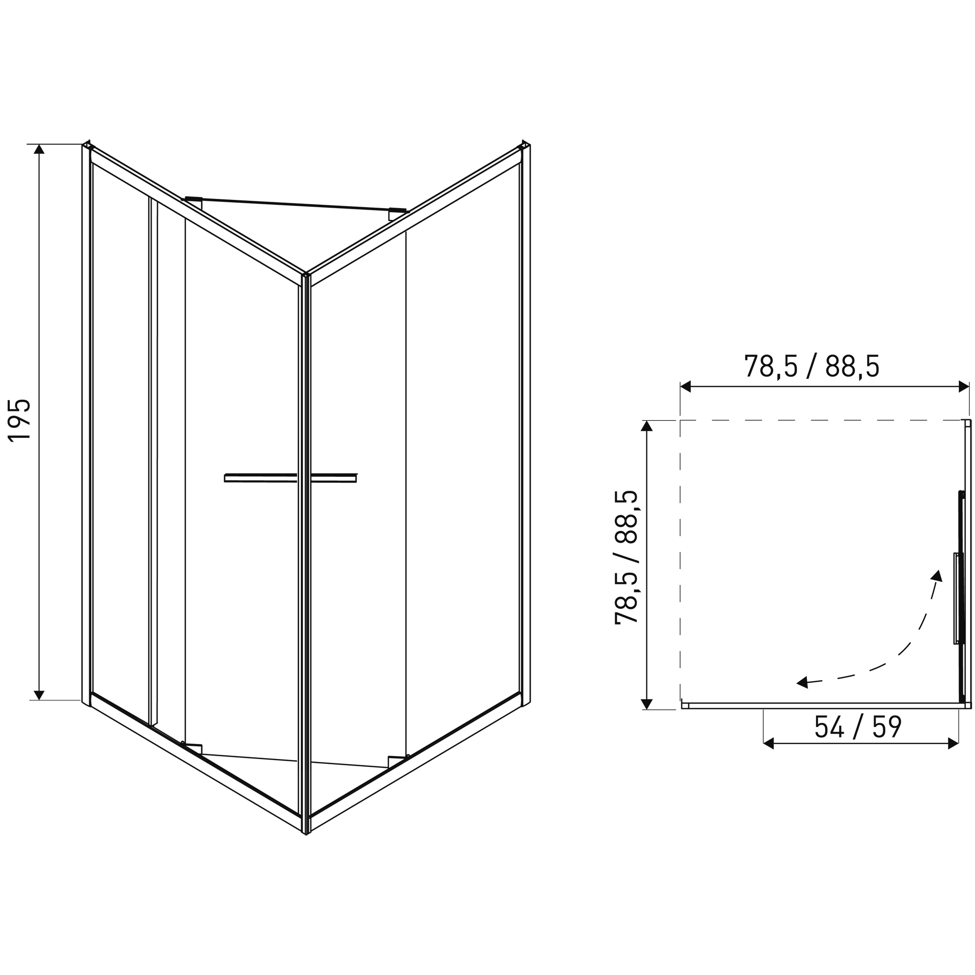 Shower enclosure Heidi 90 CHR w/o tray