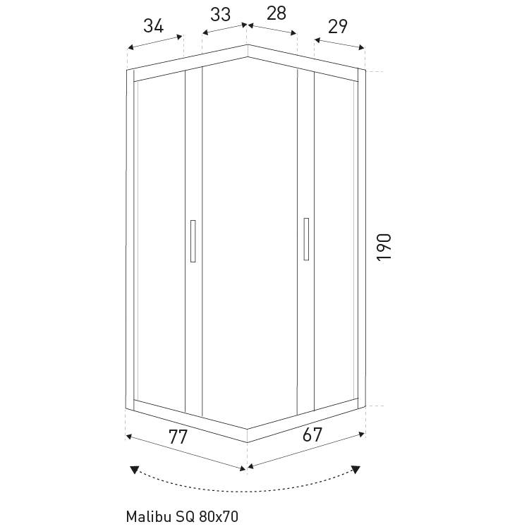 Shower enclosure Malibu SQ 80×70 w/o tray
