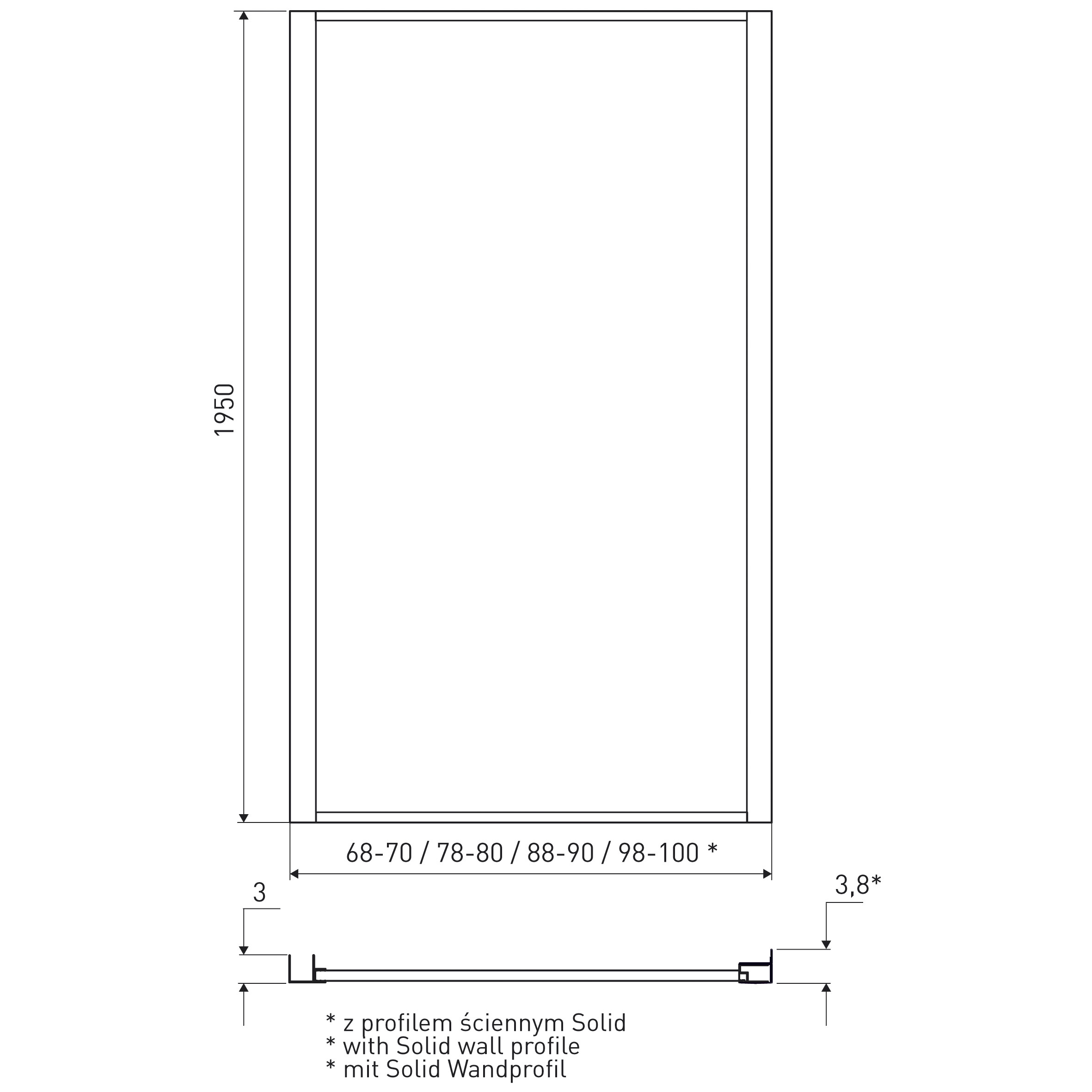 Shower wall/element Solid SC 70 BL