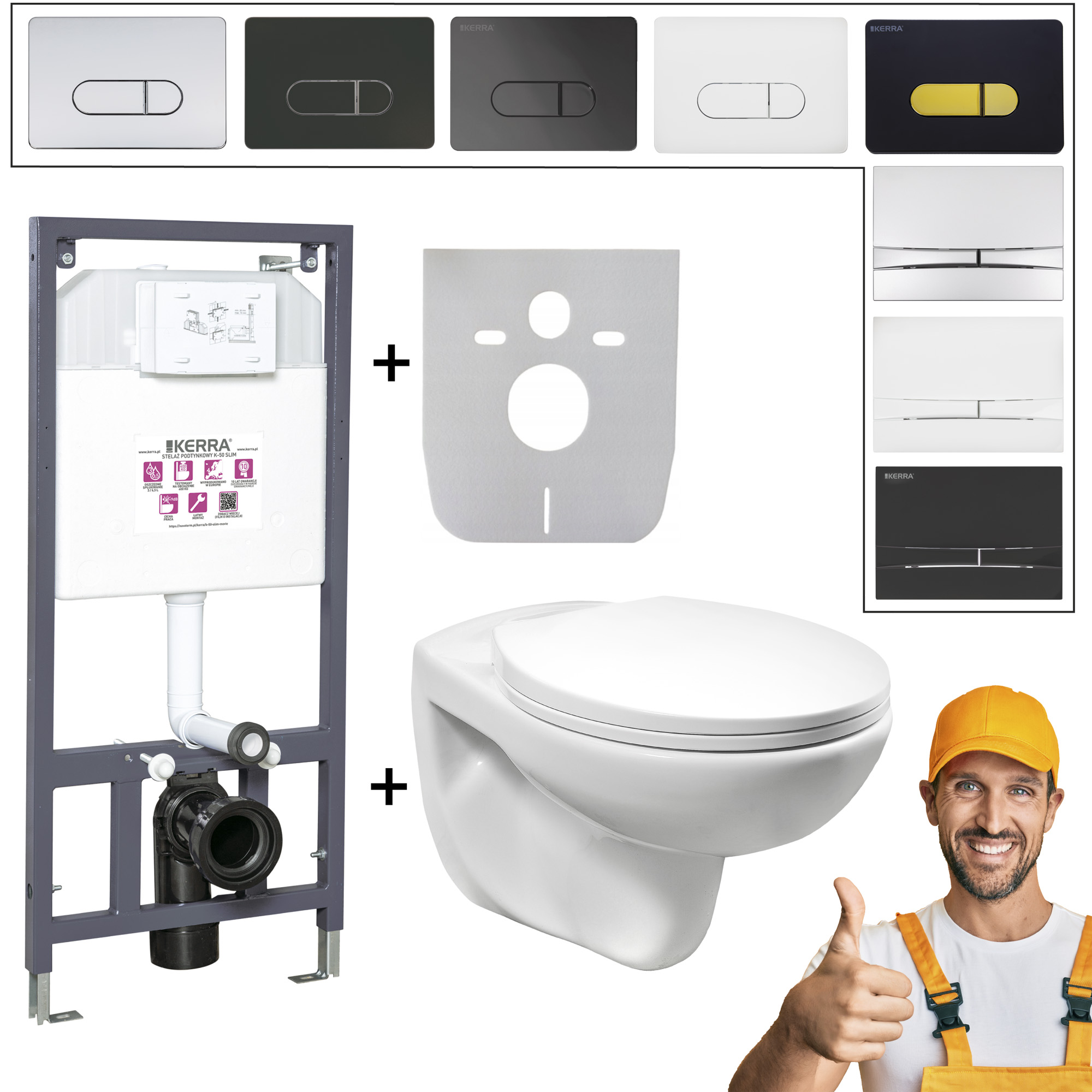 Stelaż WC podtynkowy+ miska RIMLESS+ przycisk+mata
