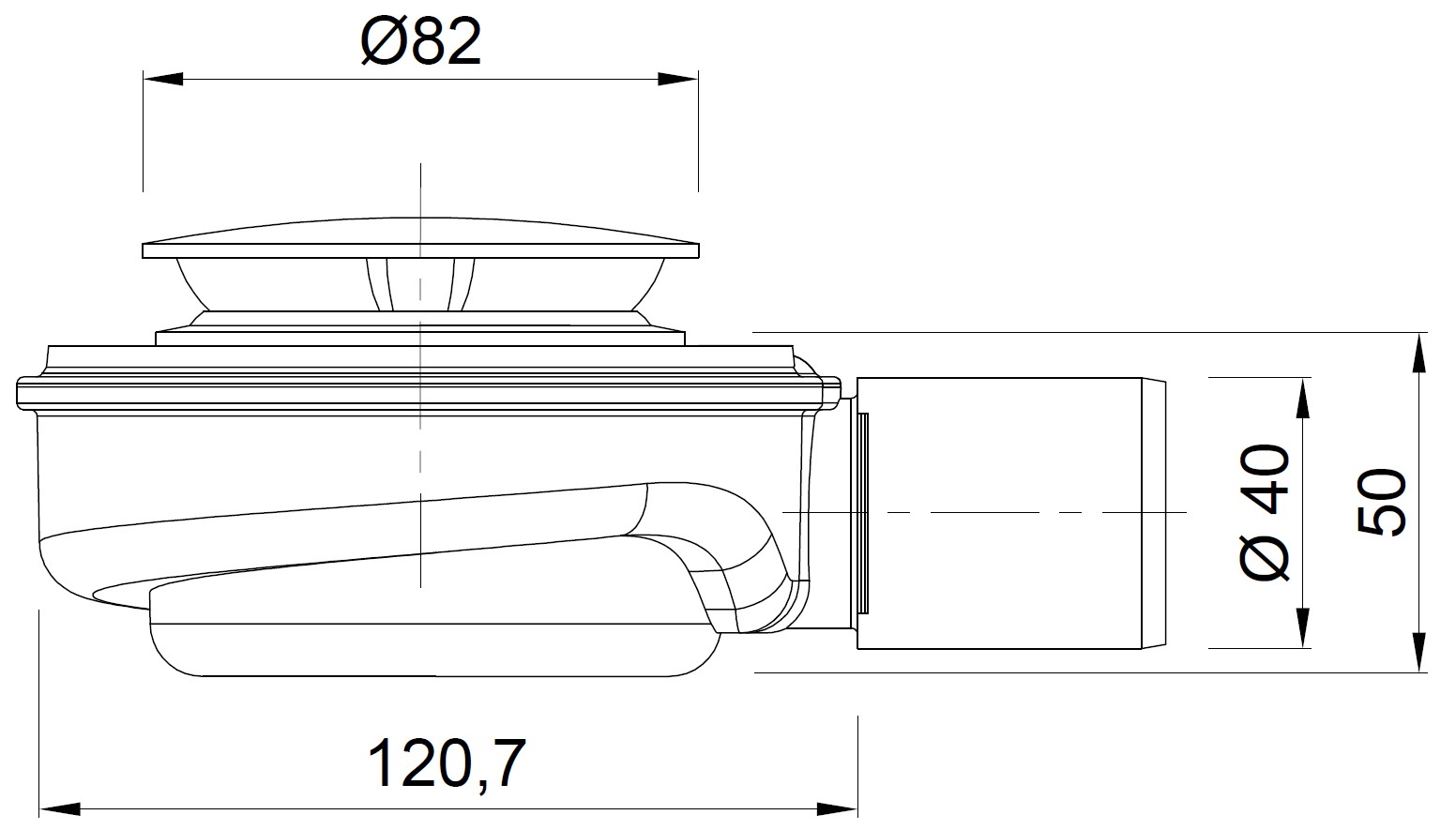 Shower tray siphon Speed 2 fi 50mm – black