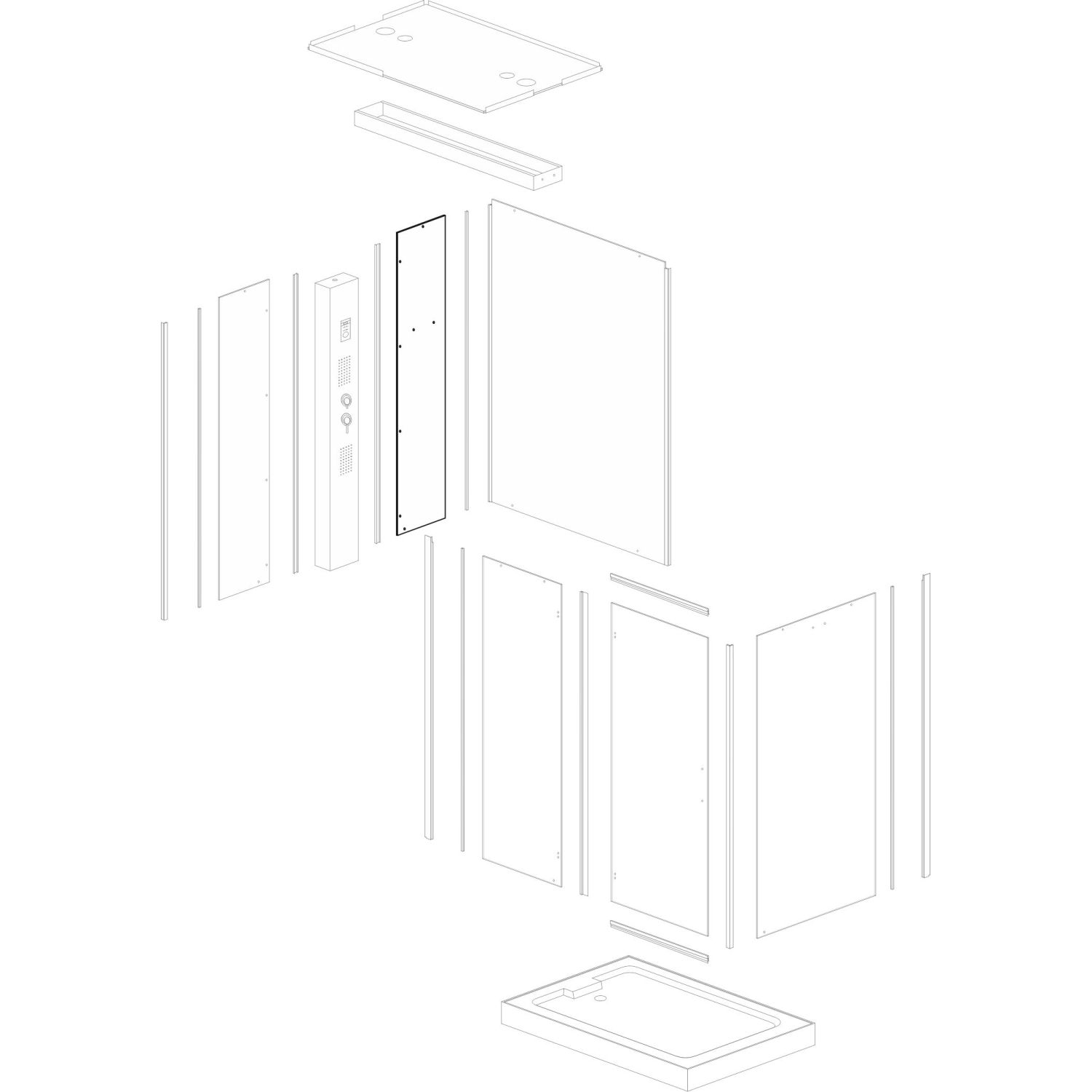 Twin/Spa L right panel glass (for shelf)