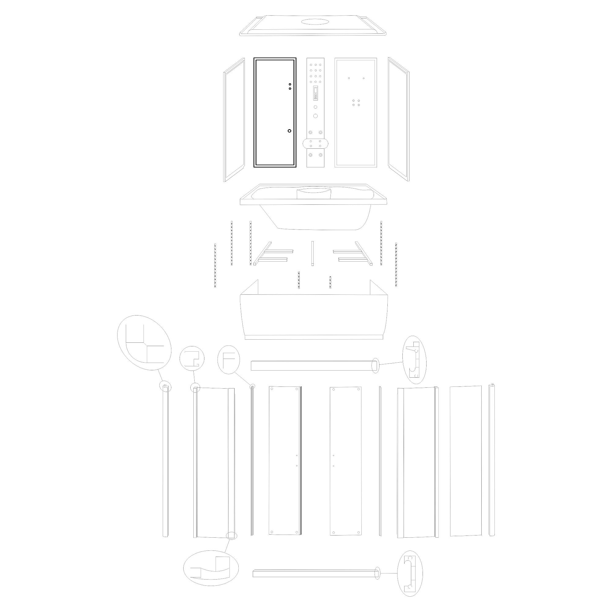 Malaga 150 back glass left (shower set) + frames assembled