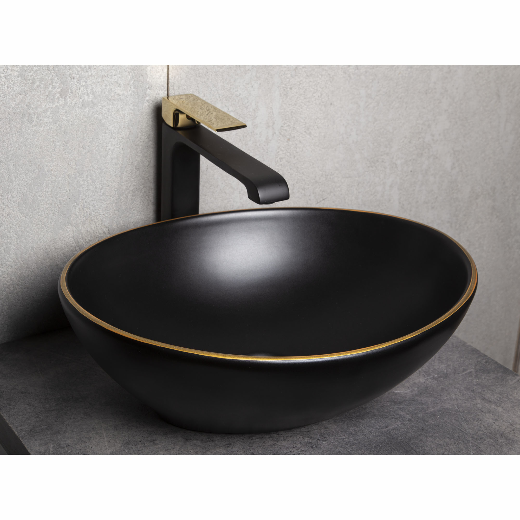 Countertop ceramic basin KR-707 BL/G (black+gold)